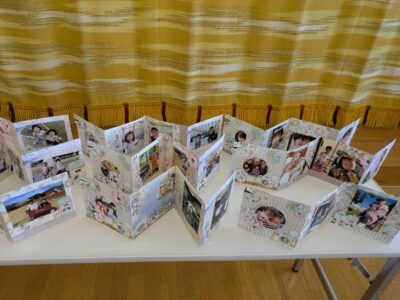トップページ > 子育て支援日記 > ほっとな会『スクラップブッキグ』 子育て支援日記 ほっとな会『スクラップブッキグ』 3回目は『スクラップブッキング』でした。 写真4枚が貼れるじゃばら型アルバムを作りました。 台紙やパーツは先生が用意して下さったものでしたが、 ちぎり方や配置の仕方でオリジナルのアルバムが完成しました。 完成したアルバムを見せ合って会員同士の会話も弾みました。 中塚先生ありがとうございました。 2025.07.22