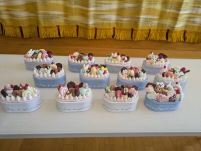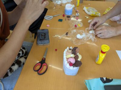 トップページ > 子育て支援日記 > ほっとな会『紙粘土教室』 子育て支援日記 ほっとな会『紙粘土教室』 4回目は『紙粘土教室』でした。 毎年、お世話になっている福島先生に来ていただきました。 今回は「スイーツの小物入れ」です! 最初に、作り方のコツを聞きます。 その後は、皆さん個々に集中して作ります。 集中しすぎで、会話を忘れてしまうほどでした。先生にも個別に丁寧に教えて頂きました。 皆さん、素敵な小物入れが出来上がりました。 お家へ帰って、お子さんたちにも自慢できますね♪ 福島先生ありがとうございました。 2025.09.16